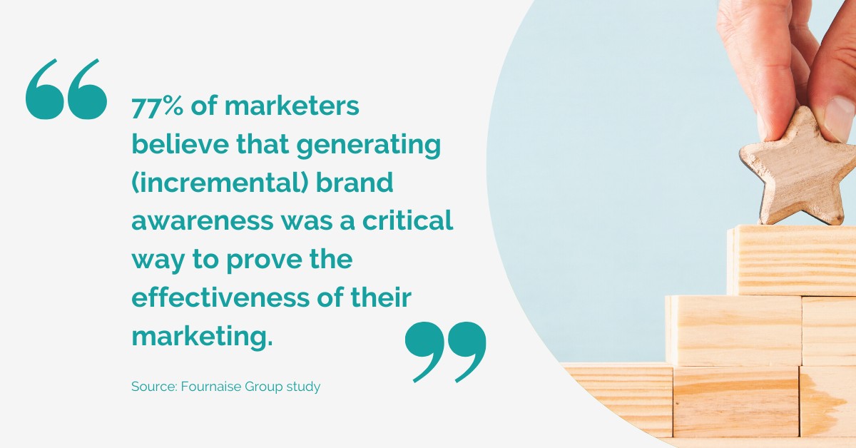 - 77% of marketers believe that generating (incremental) brand awareness was a critical way to prove the effectiveness of their marketing