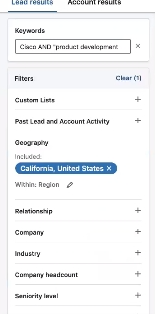 Then, you can get laser-specific using LinkedIn Sales Navigator’s filters, which allow you to filter by:
