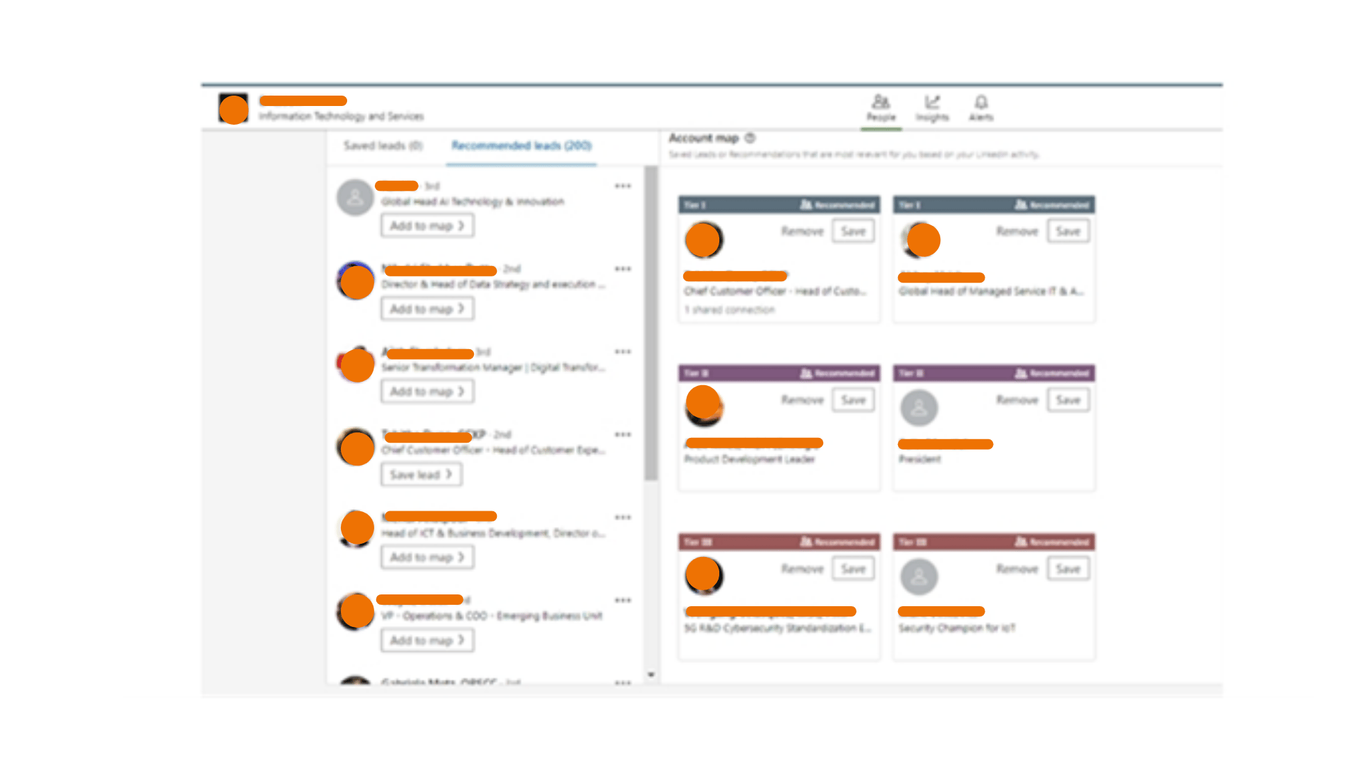 LinkedIn Sales Navigator’s Account Overview is also a great place to discover leads. It will make lead recommendations and even place them within a tiered system according to their position, which is: