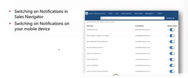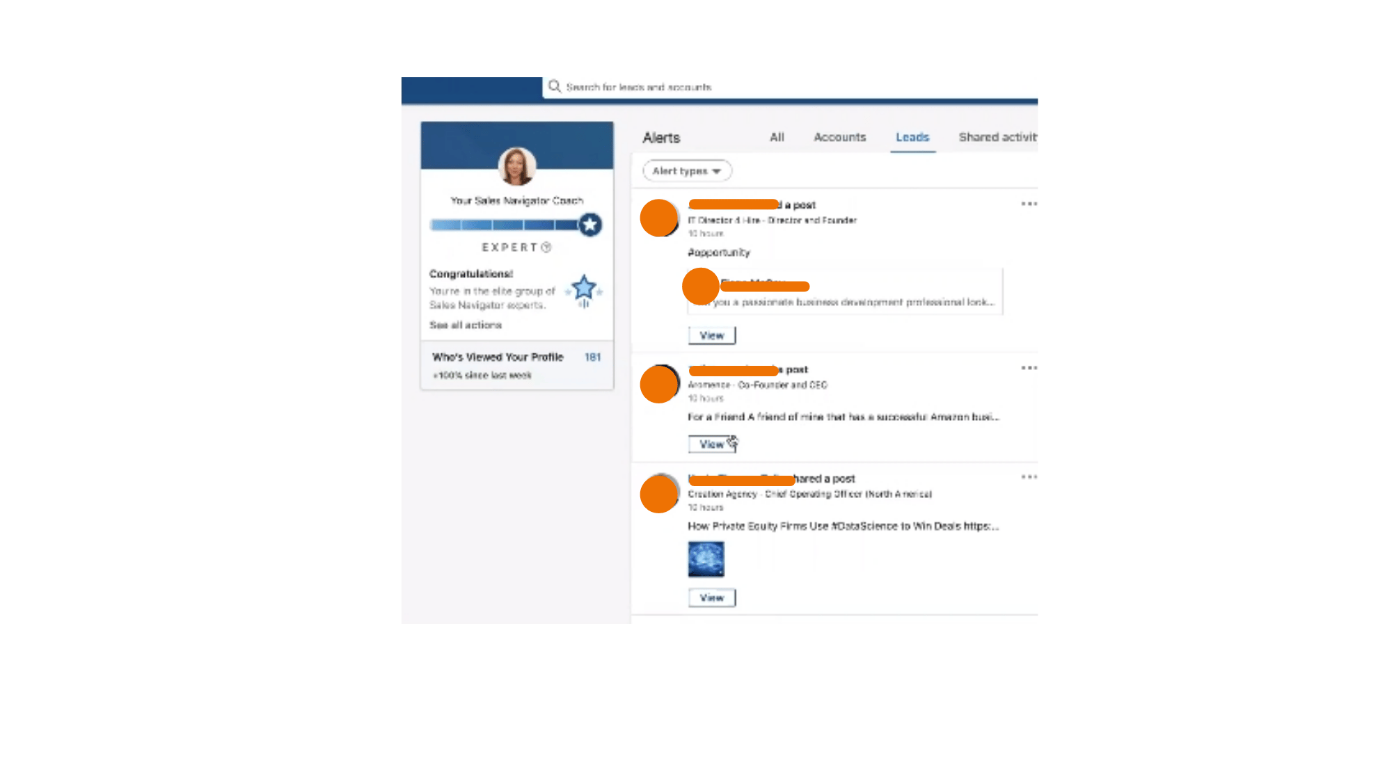 LinkedIn Sales Navigator provides a variety of alerts that will help you be the first to deepen the relationship with your existing account leads and identify potential further inroads into accounts.