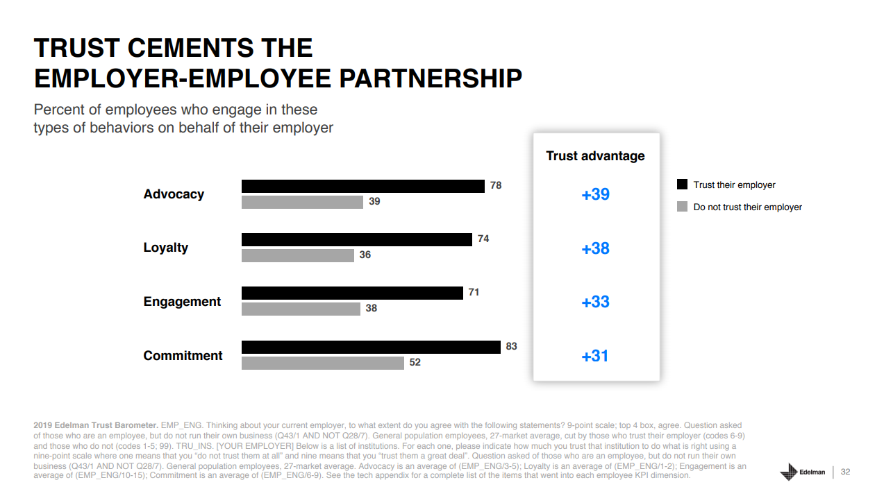 The 2019 study has shown that trust between employee and employer is at its highest. Put simply, there's never been a better time to tap into the engaged workforce and elevate this trust into advocacy.