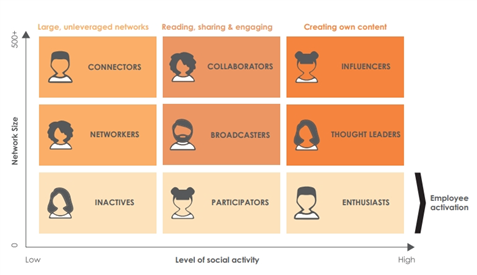 Of course, building employee influencers really is the next natural step from a successful employee advocacy program, which takes people through the 9 Stages of Employee Social Maturity. Depending on their starting position and enthusiasm, employees can reach the holy grail of Thought Leadership and then Influencer status. IF they wish to do so!