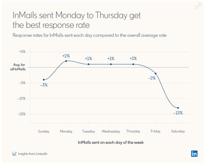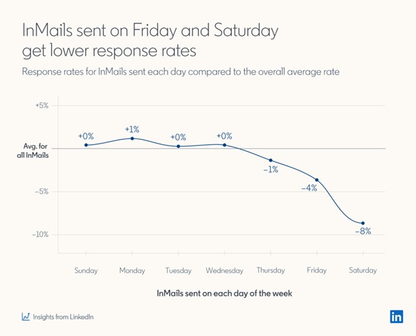 As you can see from the graphic below, Monday to Thursday are the best days to send InMails.