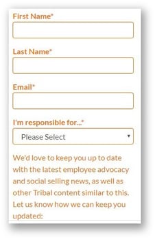 However, still only ask for what you need, you want to make the barrier to entry as low as possible. Don’t go asking for company revenue and number of employees, in exchange for an awareness piece of content, or from someone who has only just discovered your brand.