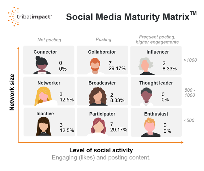 Pictured: Tribal Impact's Social Maturity Matrix complete with data on Tribal employees.