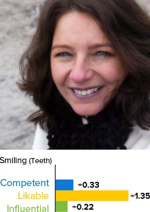 - Show your teeth when you smile: According to the website, our smile has the most significant impact on how you come across, increasing your perceived competence, likeability and influence. A closed smile has half the effect on likeability but doesn’t affect perceived confidence or influence.