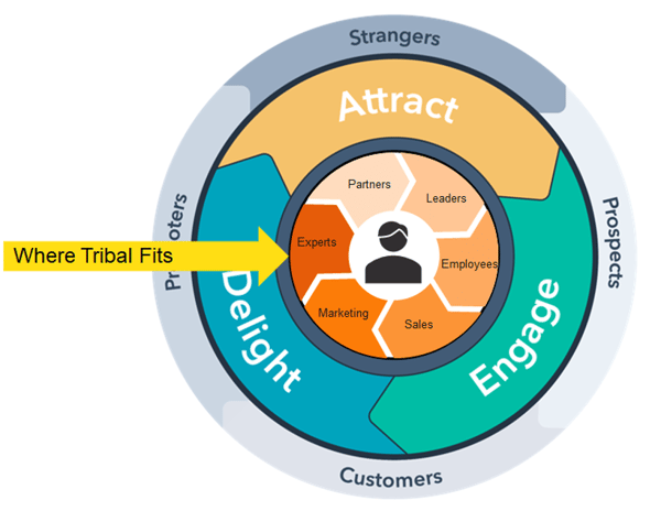 When we look at the model above, we would assume it’s the role of Marketing to Attract, Sales to Engage and Service to Delight.