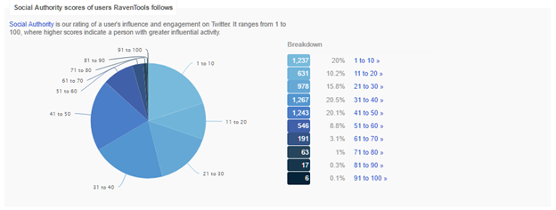 The best one. Check out who has the most social authority within the accounts follower community. Social authority is a measure of their influence. Who should you be engaging with more? Click on the numbers to see who they are. If they’re relevant to your business, consider an how you might engage them.