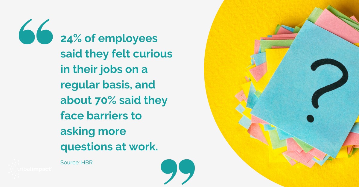 That said, HBR research showed that only about 24% of employees said they felt curious in their jobs on a regular basis, and about 70% said they face barriers to asking more questions at work. Could it be that cultures aren’t embracing curiosity? They should!