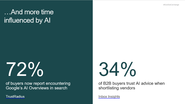 With more buying decisions happening behind the scenes, marketing’s job is harder too. Organic brand reach is falling thanks to platform algorithm changes, and engagement is dropping too.