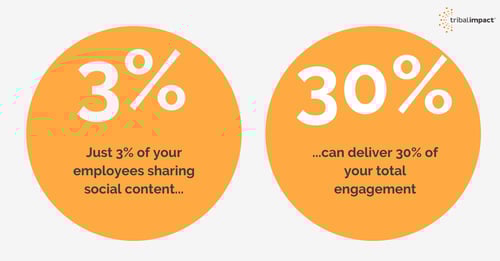 According to LinkedIn, just 3% of your employees sharing social content can deliver 30% of your total engagement so you don’t need to mould everyone on the payroll into a social influencer.