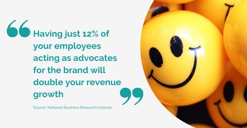 In fact, according to the National Business Research Institute, having just 12% of your employees acting as advocates for the brand will double your revenue growth.